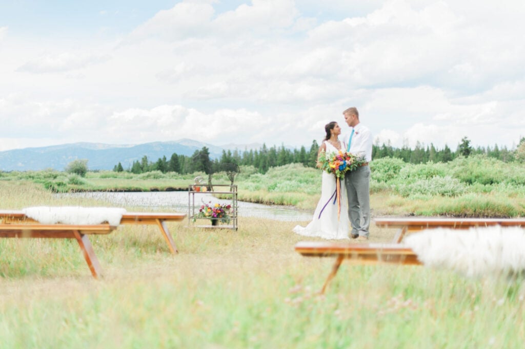 With stunning mountain vistas and a river running through the guest ranch, the Bar N Ranch is able to host West Yellowstone weddings & events, large or small. There is a beautiful spot for a wedding ceremony right on the bank of the river, with incredible mountain views beyond. We also have our main lodge and cabins available for lodging – What could be nicer than accommodating all your guests on site and allowing the party to last all weekend rather than just one night?